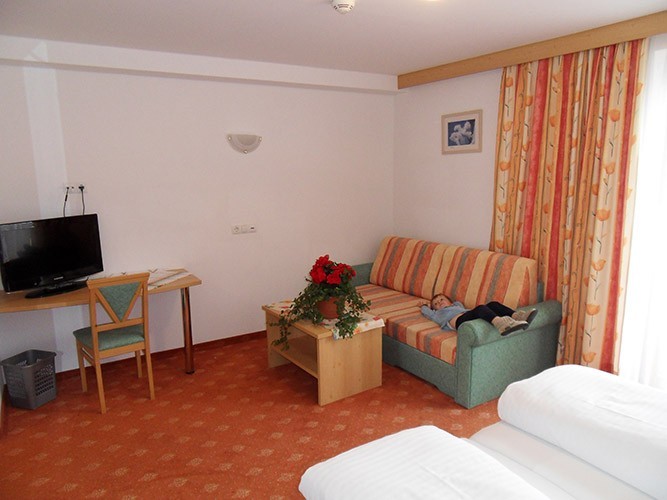 - Familienzimmer sind ident mit Doppelzimmern, bieten aber eine zusätzliche Couch (kann auch als Schlafcouch für zwei Personen verwendet werden)